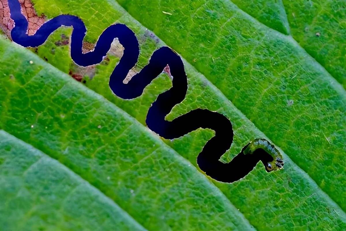 13. 這些樹葉被毛毛蟲啃過,如果不仔細看還真以為是南美亞馬遜河的航拍照片呢,你看錯了嗎?