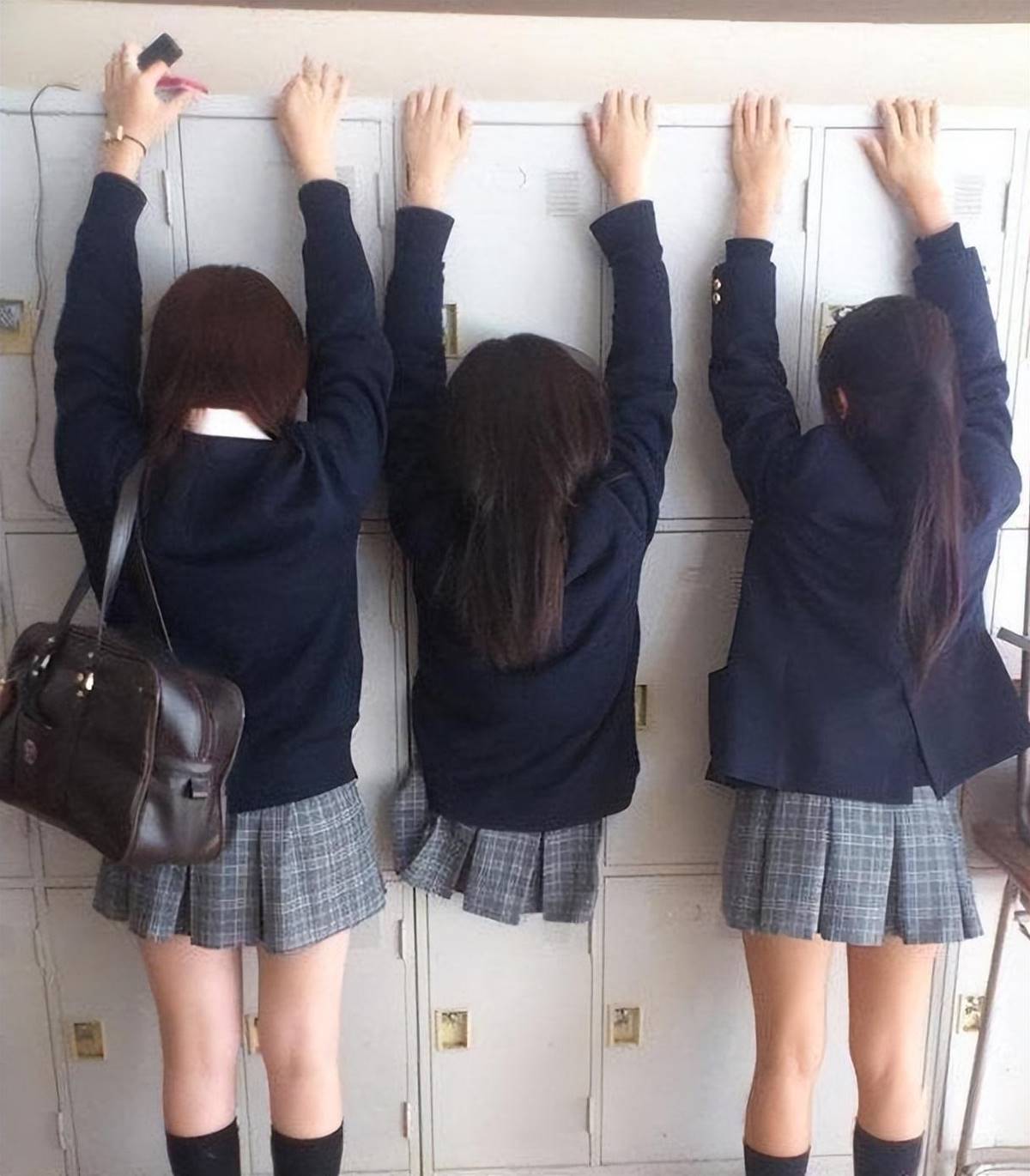8. 這三個穿制服的少女中間那位放腿在柜子上,這樣挺危險的,因為重心不太穩。