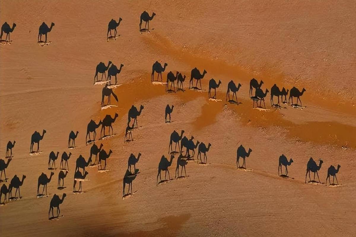 11. 這張照片是從沙漠上空拍攝的,黑色的東西不是駱駝本身,而是它們的影子。
