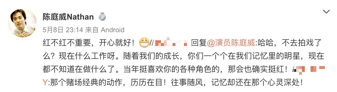 不過,2004年陳庭威就結束了與亞視的合作,因為亞視發展難以繼續,之後他前往內地發展,為人也低調了起來,雖然也有拍攝內地的劇集、電影,但是作品數量不多,更多的時候應該都是在做登台演出,所以比起從影視作品中了解到陳庭威的近況,還真不如在他的社交平台上了解來得多。