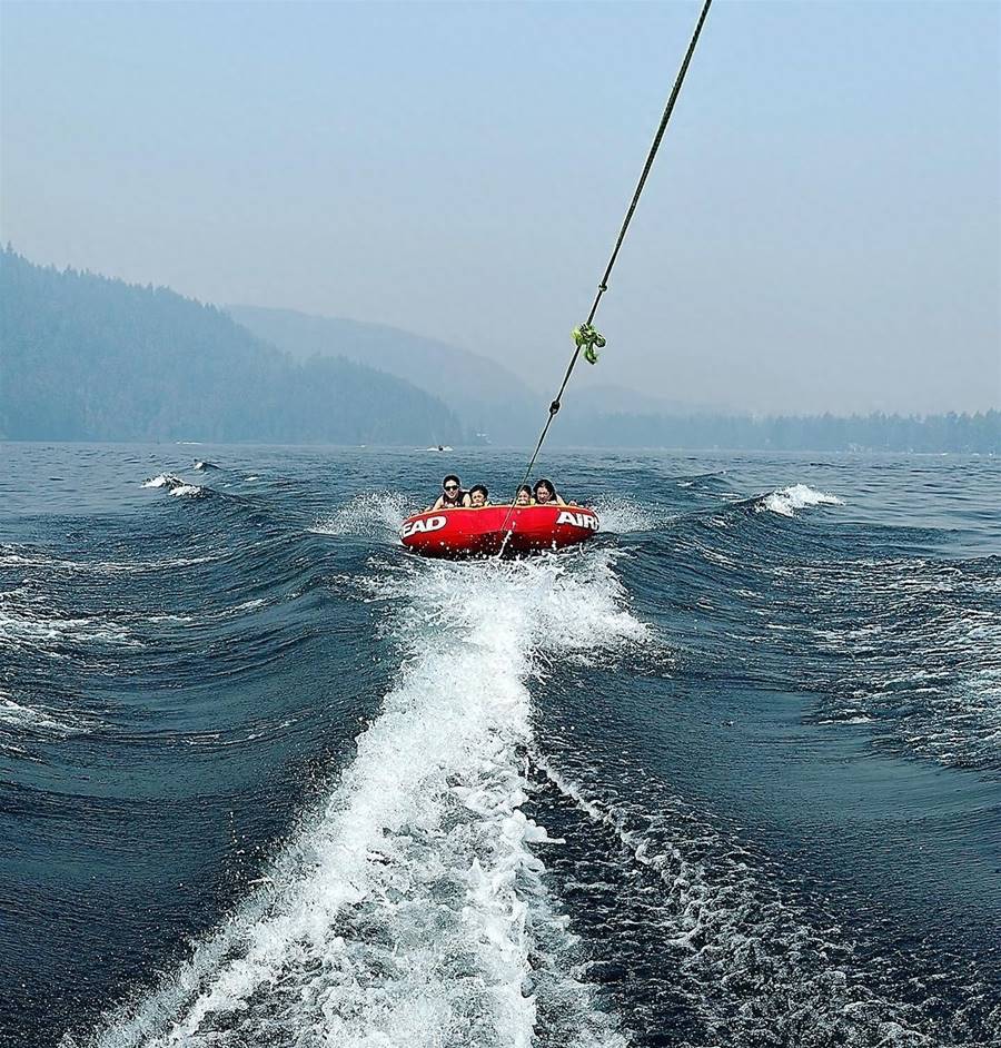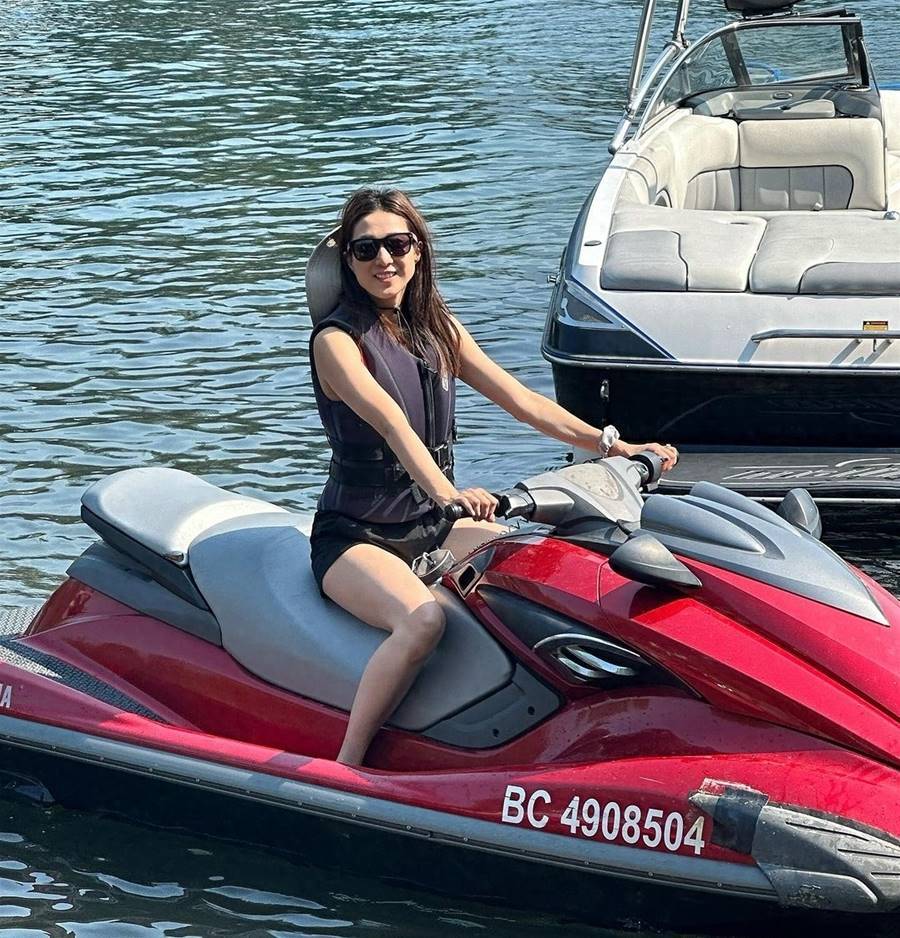鐘嘉欣還獨自嘗試水上摩托,真是人美膽大。