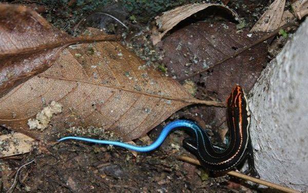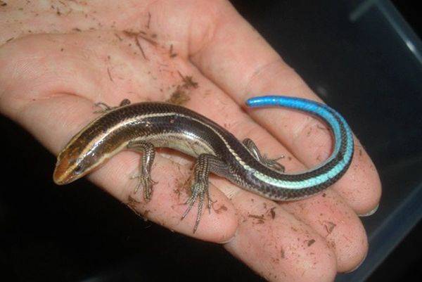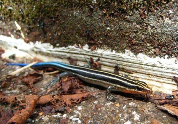 經過查閱相關資料,發現這是一條藍尾石龍子,它是一種快瀕臨滅絕的生物,也是世界一級保護動物。