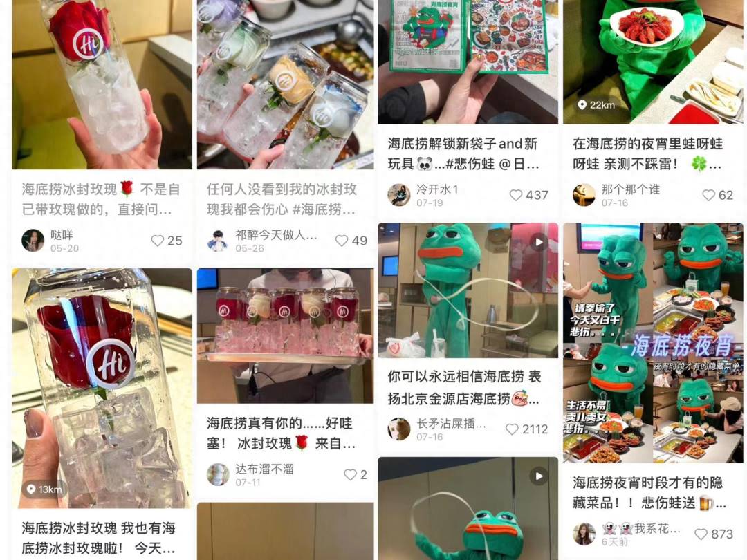 自疫情期间尝试卖盒饭,卖早餐,摆摊卖菜后,海底捞就仿佛打通了血脉觉醒一般,开始各种花式整活搞钱,并且频上微博热搜。先是各大演唱会“捞人”,与悲伤蛙等联名。最近更是被网友发现,海底捞在青岛夜市摆上了摊。