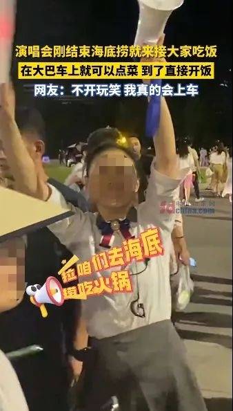 原来有人发现,演唱会还没开始,海底捞员工就开车来现场“捞人”了。