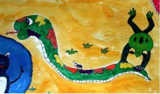 到了現場之後,閨蜜看到小可女兒畫的蛇確實畫的非常不錯,可是仔細端詳之後,