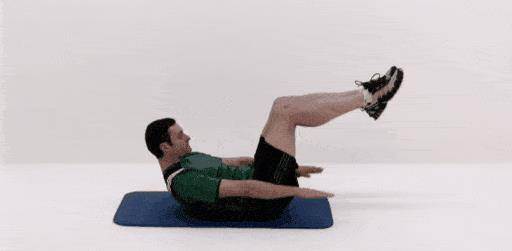 呼氣,收緊腹部,慢慢彎曲頭部和軀干,至肩胛骨離開地面,同時抬雙手臂向上,略高于大腿,掌心向下