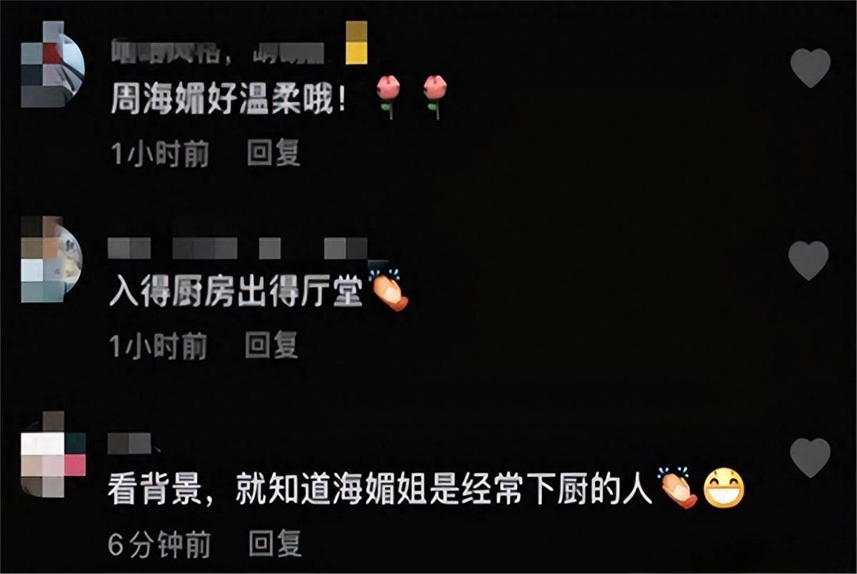 這也從側面說明了周海媚生活中非常樂觀,她并不擔心自己變老了還是怎麼樣,甚至自己主動下廚主動工作。