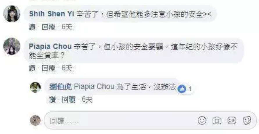 不過,還是有部分網友考量到寶寶的安全問題,「好辛苦,希望爸爸能用揹帶背小孩會比較安全一點」、「還是要注意小孩子的安全」、「 辛苦了,但小孩的安全要顧,這年紀的小孩好像不能坐貨車。