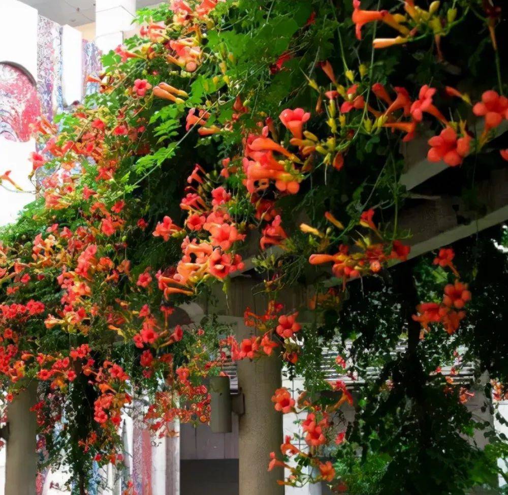 凌霄花也是一種耐寒植物,它有橙色、黃色、粉色,黃色和粉色不耐低溫,低于零度很容易就會凍傷枝條,普通橙色的能夠耐零下20度以上的低溫,無論哪個品種的,它們都是在夏季開花,開花量非常的大,而且是屬于藤本,可以自己貼著墻攀爬,做花墻非常的合適。
