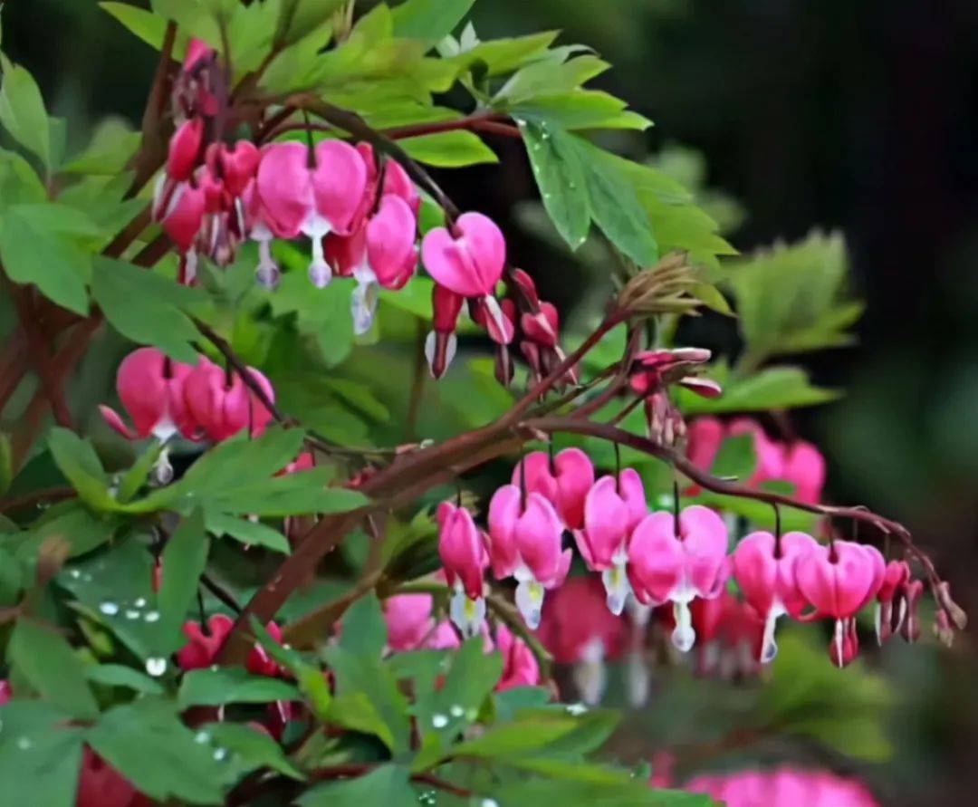 荷包牡丹和牡丹不一樣,它是屬于罌粟科的植物,跟我們知道的牡丹不一樣,牡丹是屬于芍藥科的植物,它們雖然都帶著牡丹,但是開的花不一樣,它也是一種非常耐寒的植物,開花的時候一根花枝長出來,斜著垂下來,上邊一個一個像荷包一樣的花,開出來的花非常的漂亮,在春季會萌芽,到了冬季植株以上的部分會凍死,根莖是完好的,根莖也會不斷的分生,苗子會越出越多。