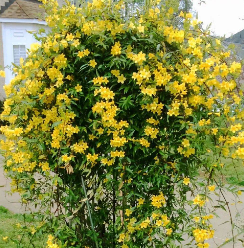 如果有面墻或者是籬笆,可以去種上一棵法國香水藤,它開花黃色,像喇叭花一樣,非常的漂亮,而且開花有香味,非常的好聞。