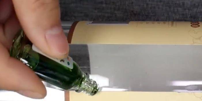 準備一瓶家裡非常常見的風油精,將風油精均勻的塗在商標的表面,有許多朋友肯定沒有想到,風油精也可以去除像這樣的商標吧,靜置兩到三分鐘就可以撕商標了,在撕的時候真的是非常的簡單,輕輕的一撕這些商標就下來了,還非常的解壓。