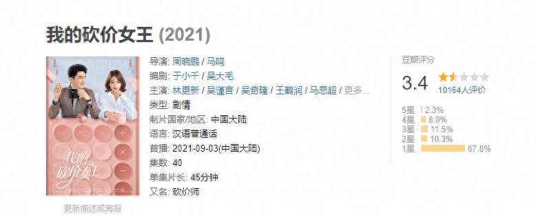 我們看一下她之后的作品。《外灘的鐘聲》豆瓣評分6.4,《皓鑭傳》豆瓣評分4.8,《青春創世紀》6.1,《正青春》4.3,就連她和聶遠二次合作的《幸福還會來敲門》,豆瓣評分也只有3.2.當下熱播劇《我的砍價女王》豆瓣評分3.3分。