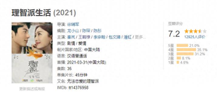 雖然這只是一部網劇,卻讓秦嵐再度火了一小把,延續了《延禧攻略》的熱度。如今,她二搭王鶴棣主演的《理智派生活》成績也不錯,豆瓣評分更是高達7.2。