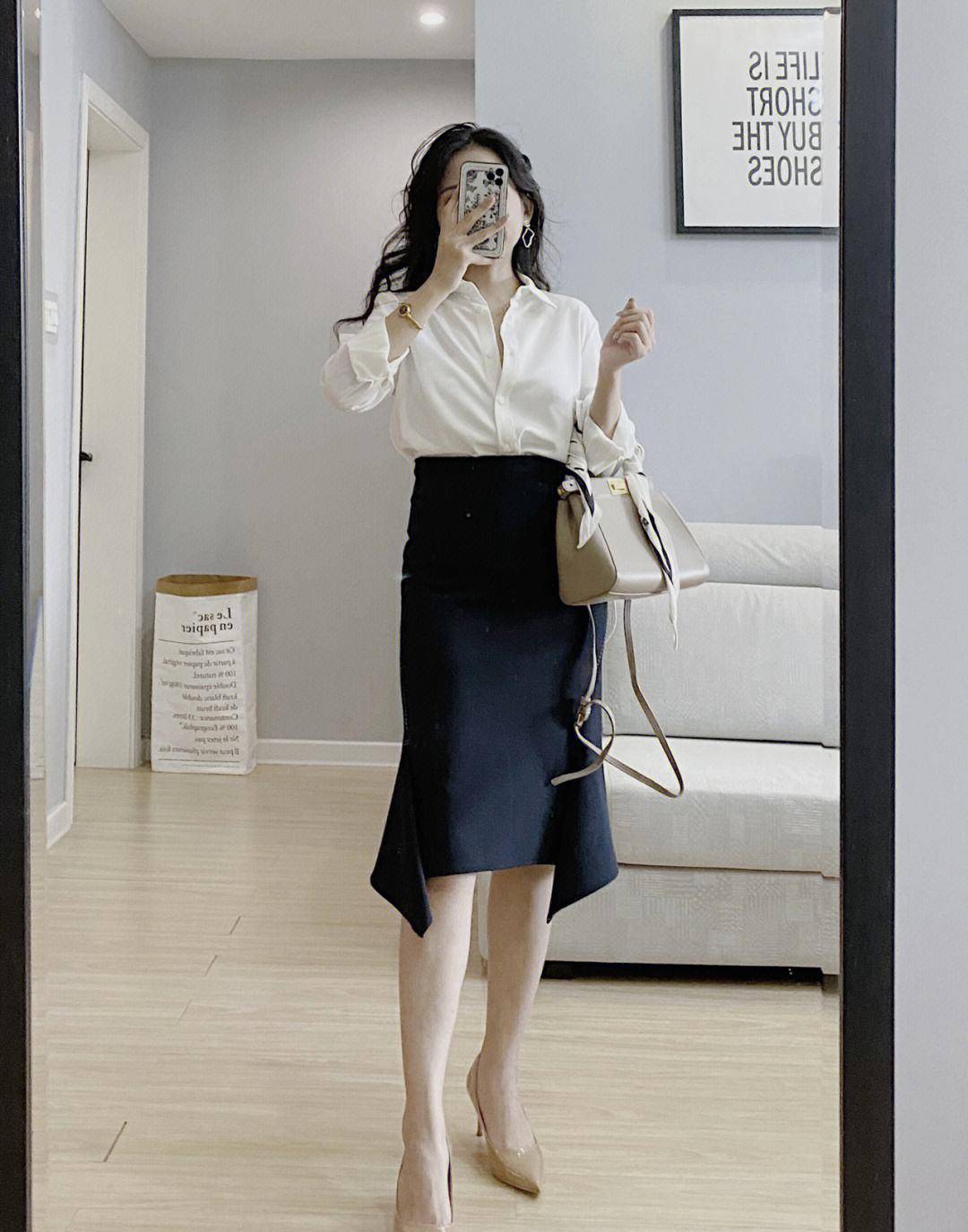 一:去立夏,選一件白襯衫,搭配一條黑色包臀裙。