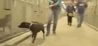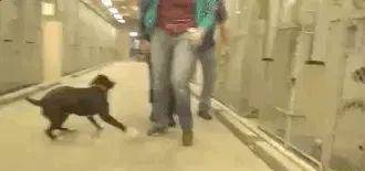 話說這家伙也足夠幸運,本來馬上就要被送去安樂死了,結果恰好被領養,這也難怪狗狗會如此興奮,畢竟每天待在籠子里并不好受。